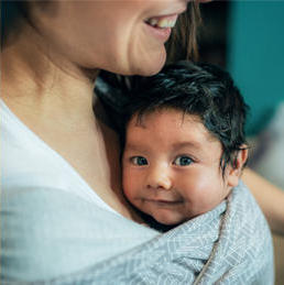 Then they become aware of the sides of their body as they begin to roll over, with their breathing being soft and natural. Once they master that movement, they gain voluntary control over their shoulders and hips... and start to crawl.
