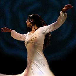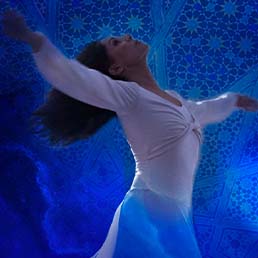 Master of mystical Persian dance, when Banafsheh teaches or performs, she moves with an attitude of liquid gold pouring over silk velvet. She embodies what it means to dance with abandon, what it means to fully live the ecstatic poetry of Rumi, of luminous moonlight on radiant silver clouds.
