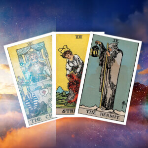Explore how The Chariot (Cancer), Strength (Leo), and The Hermit (Virgo) can help you remain grounded and vulnerable in your relationships — and calm, yet courageous, in matters of the heart.