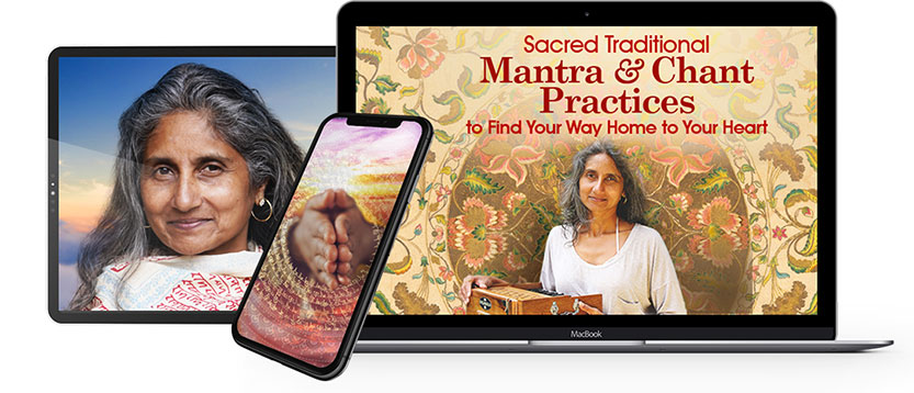 Experience a unique opportunity to learn from seeker and chantress Nina Rao from the comfort of your own home. Each session includes a streaming video and guides you to discover specific skills and abilities to experience the calming and heart-opening benefits of an intentional chanting practice, and personalize your own — to find a sanctuary of divine love within your own heart again and again.